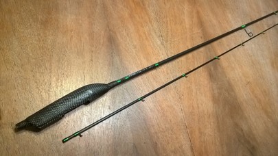 Ubrany został w dzieloną rekojeść z korka burnt, uchwyt Sea Guide XSS-DLN 16, nakręcany grip zabudowany rurką z woven carbonu, przelotki Sea Guide RS SIC, na szczycie Fuji SIC, całość wykończona czarnymi pierścionkami, omotka w kolorze czarnym.