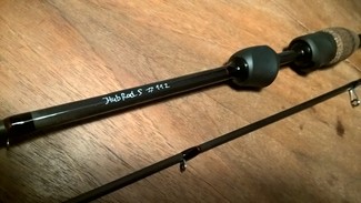 Wędka zbudowana na blanku rodem z Krakowa, czyli FishingArt z nowej serii na 2016 czyli Kraag SKF 805-2N. Blanki z tej serii konstruowane były z myślą o wędkarzach preferujących przynęty gumowe, czyli czuła delikatna szczytówka i ugięcie przesunięte do szczytu. Ten konkretny egzemplarz ma 2,4 metra długości, moc 5 lb oraz cw 0,6-10 g, blank opisany poprawnie.