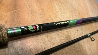 Blank ubrany został w przelotki S6 SIC od 30y do 6L, rekojeśc z mixu korków burl oraz aluminium, do tego uchwyt SeaGuide XSS17. Omotki w kolorach nawiązujących do oryginalnej grafiki, czyli zieleń oraz tipet dwie nitki w odcieniach purpury.