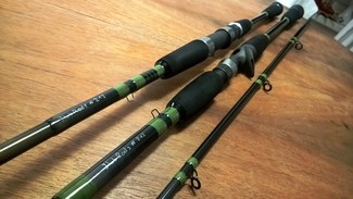 Sumowy duet spod znaku Xzoga, Taka G66-15kg oraz Taka G75-16kg, długości odpowiednio 1,98 i 2,26 metra, moc odpowiednio 4-6=5-6 PE, można starać się przeliczyć na LB i jak dla mnie to tak 40-60lb, co do obsługiwanego cw. to odpowiednio 200 i 300 g, chociaż nie sa one przeznaczone stricte do łowienia z ręki.